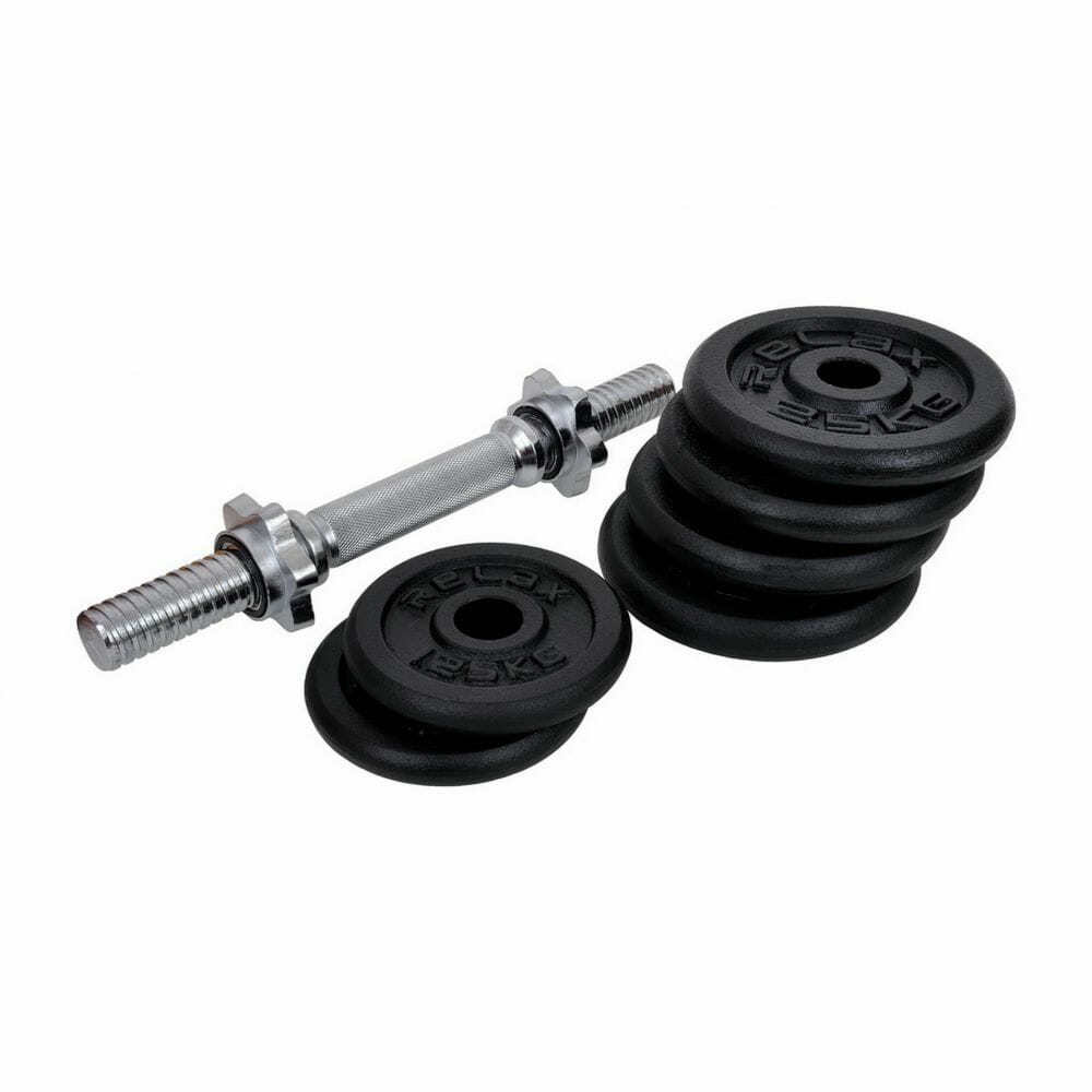 - bučica sadrži 1x15kg (2×1.25kg; 4×2.5kg; 1xšipka2.5kg).