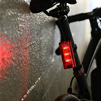 Dugotrajno zadnje svetlo na baterije sa visokom vodootpornošću IPKS7. Ugrađena funkcija „Režim kočenja“ će upozoriti druge iza vas o vašem usporavanju.